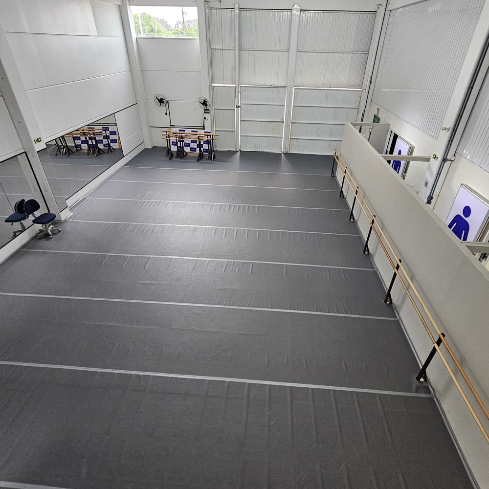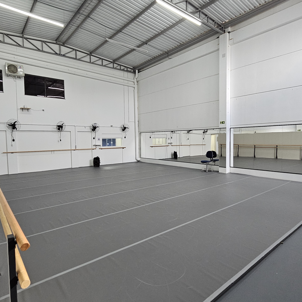 • Cinco salas amplas, todas climatizadas, com pisos profissionais específicos para a prática da dança